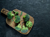 widok z góry świeże brokuły na płycie na drewnianej powierzchni