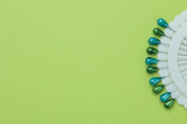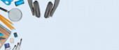 jednorazowe plastikowe naczynia, widelce na niebieskim tle, klasyczny niebieski kolor, pionowa odmiana, przestrzeń do kopiowania