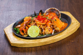 owoce morza Azji pan smażone na białym tle na biały