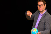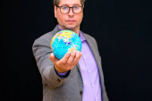 Zdjęcie "Widok z przodu wizerunek biznesmena nosi garnitur z okularami okularowymi trzymającymi cyfrowy globus w dłoni pokazuje kciuk w górę. globalnej komunikacji biznesowej.Black tło studio." może być wykorzystywane do celów osobistych i komercyjnych zgodnie z warunkami zakupionej licencji Royalty-free. Obraz jest dostępny do pobrania w jakości wysokiej rozdzielczości do 5760x3840.