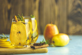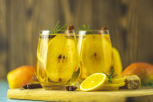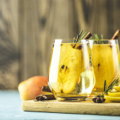 Uroczyste letnie drinki, koktajl z gruszek. Gorący koktajl napojowy na święta Bożego Narodzenia, zimy lub jesieni
