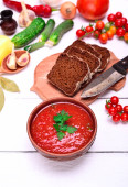 Zdjęcie "zupa pomidorowa smaczne i warzywa na drewnianym stole" może być wykorzystywane do celów osobistych i komercyjnych zgodnie z warunkami zakupionej licencji Royalty-free. Obraz jest dostępny do pobrania w jakości wysokiej rozdzielczości do 5760x3840.