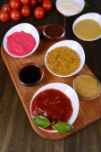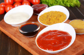 Zdjęcie "różne sosy na desce do krojenia na stół szczegół" może być wykorzystywane do celów osobistych i komercyjnych zgodnie z warunkami zakupionej licencji Royalty-free. Obraz jest dostępny do pobrania w jakości wysokiej rozdzielczości do 5760x3840.