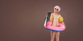 Młoda kobieta w dobrze dopasowanej odzieży sportowej stojąca na siłowni z matą do jogi w rękach