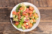 Zdjęcie "sałatka warzywna z wędzonym łososiem" może być wykorzystywane do celów osobistych i komercyjnych zgodnie z warunkami zakupionej licencji Royalty-free. Obraz jest dostępny do pobrania w jakości wysokiej rozdzielczości do 5760x3840.