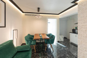 Zdjęcie "Wnętrze luksusowego lobby hotelowego z marmurową podłogą, recepcja" może być wykorzystywane do celów osobistych i komercyjnych zgodnie z warunkami zakupionej licencji Royalty-free. Obraz jest dostępny do pobrania w jakości wysokiej rozdzielczości do 5760x3840.