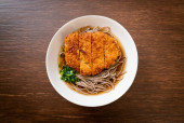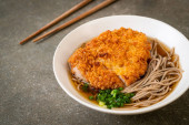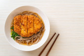 Soba ramen makaron z japońskim kotletem wieprzowym (tonkatsu) - azjatycki styl żywności