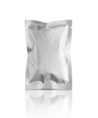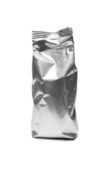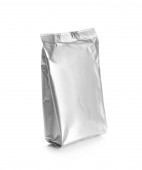 pusta folia Worek aluminiowy do mleka w proszku, herbaty lub kawy izolowany na białym tle z ścieżką wycinania