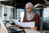 Zdjęcie "Strzał pewny siebie młody arabski biznes kobieta noszenie hidżab podczas pracy z laptopem siedzi w biurze." może być wykorzystywane do celów osobistych i komercyjnych zgodnie z warunkami zakupionej licencji Royalty-free. Obraz jest dostępny do pobrania w jakości wysokiej rozdzielczości do 5760x3840.
