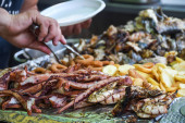 Grill fair festiwal jedzenie kiełbasa ziemniaki mięso kuchnia marmit grill na świeżym powietrzu