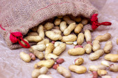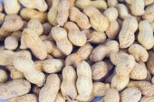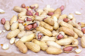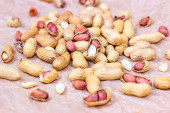 Surowe orzeszki arachidowe w pigułce na jasnym tle papieru.