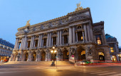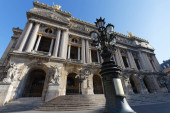 Widok z przodu Opery Narodowej w Paryżu. Grand Opera to słynny neobarokowy budynek w Paryżu.