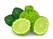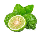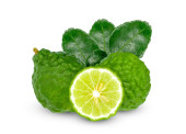 owoce bergamot lub kaffir z liściem wyizolowanym na białym tle