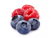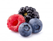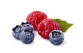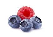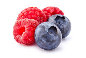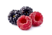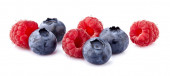 Maliny z jagodami odizolowane na białym tle. Owoce dojrzewające izolowane.