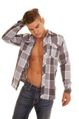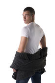 młody człowiek sprawny i cztery ręce kobiece, dotykając go od tyłu