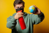 Zdjęcie "facet w masce trzymać Ziemi globus na żółtym tle " może być wykorzystywane do celów osobistych i komercyjnych zgodnie z warunkami zakupionej licencji Royalty-free. Obraz jest dostępny do pobrania w jakości wysokiej rozdzielczości do 5760x3840.