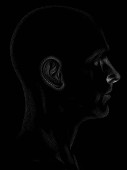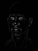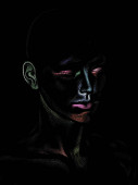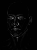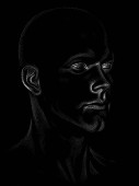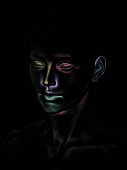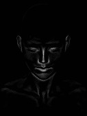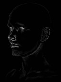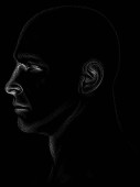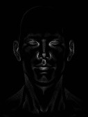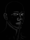 Seria Dot Rendering. 3D renderowanie głowy modelu człowieka wykonywane techniką naklejania obrazu.
