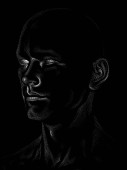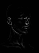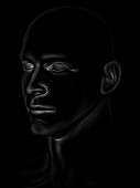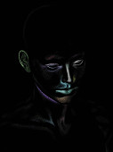 Seria Dot Rendering. 3D renderowanie głowy modelu człowieka wykonywane techniką naklejania obrazu.