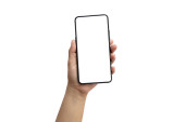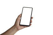 Zdjęcie "Ręka trzyma biały ekran, telefon komórkowy jest odizolowany na białym tle ze ścieżką wycinania." może być wykorzystywane do celów osobistych i komercyjnych zgodnie z warunkami zakupionej licencji Royalty-free. Obraz jest dostępny do pobrania w jakości wysokiej rozdzielczości do 5760x3840.