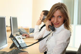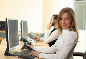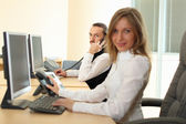 kobieta i mężczyzna na tle z telefonów i komputerów