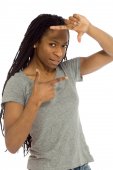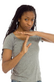 Sexy kobieta atrakcyjne oprawy jej ręce nad białym