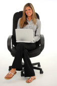 kobieta pracuje na laptopie z filiżanką kawy na jej biurku