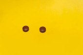 Świeże jagody acai na żółtym tle, płaskie układanki
