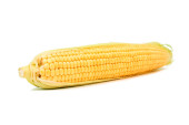 Dojrzała kolba kukurydzy z łupiną wyizolowaną na biało