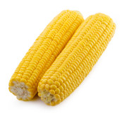 Dojrzałe kolby kukurydzy surowe izolowane na białym