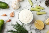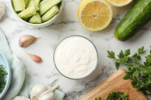 Zdjęcie "Słoik ze świeżo dojrzewającymi ogórkami i przyprawami na szarym stole, płaskie ułożenie. Miejsce na tekst" może być wykorzystywane do celów osobistych i komercyjnych zgodnie z warunkami zakupionej licencji Royalty-free. Obraz jest dostępny do pobrania w jakości wysokiej rozdzielczości do 5760x3840.