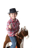 ładny bardzo młody kowboj przytrzymanie liny uśmiechający się