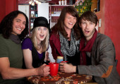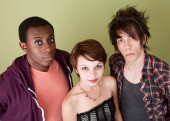 atrakcyjny punk dziewczyna uśmiecha się do kamery.