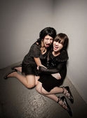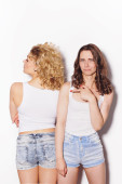 dwa sfrustrowany punk nastolatek dziewczyny wyglądają do kamery