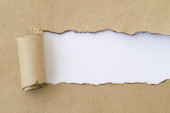 Podarty papierowy pasek z białą kopią. Tektura podarta