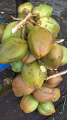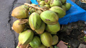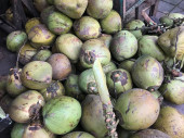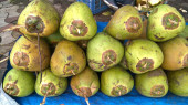 Świeże zielone orzechy kokosowe, kokosy, Cocos nucifera jest członkiem rodziny palm