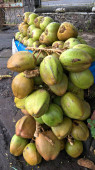 Zdjęcie "Świeże zielone orzechy kokosowe, kokosy, Cocos nucifera jest członkiem rodziny palm" może być wykorzystywane do celów osobistych i komercyjnych zgodnie z warunkami zakupionej licencji Royalty-free. Obraz jest dostępny do pobrania w jakości wysokiej rozdzielczości do 5760x3840.