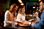 Zdjęcie "Grupa młodych ludzi siedzi w kawiarni, rozmawia i cieszy się" może być wykorzystywane do celów osobistych i komercyjnych zgodnie z warunkami zakupionej licencji Royalty-free. Obraz jest dostępny do pobrania w jakości wysokiej rozdzielczości do 5760x3840.