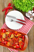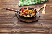 domowe palonej kurczaka podudzia z smażone ziemniaki i warzywa na patelni, na białym tle