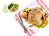 domowe smażonego kurczaka podudzia z warzyw na talerzu na białym tle