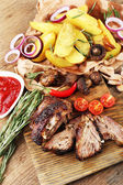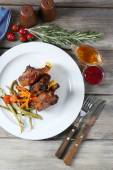 domowe smażonego kurczaka podudzia z warzyw na talerzu, na tle drewniane