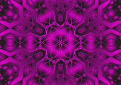 Ilustracja cyfrowa, geometryczny abstrakcyjny kolorowy kalejdoskop symetryczny wzór z efektem gradientowym. Vintage piękne dekoracyjne różowe tło