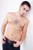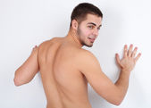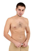 Przystojny młody mężczyzna na jasnym tle