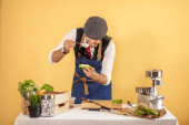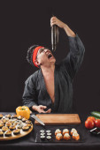 Zdjęcie "Chef cięcia burger na dwie połówki, aby wykonać wysokiej jakości składniki" może być wykorzystywane do celów osobistych i komercyjnych zgodnie z warunkami zakupionej licencji Royalty-free. Obraz jest dostępny do pobrania w jakości wysokiej rozdzielczości do 5760x3840.