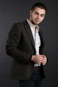 Zdjęcie "przystojny młody mężczyzna na ciemnym tle" może być wykorzystywane do celów osobistych i komercyjnych zgodnie z warunkami zakupionej licencji Royalty-free. Obraz jest dostępny do pobrania w jakości wysokiej rozdzielczości do 5760x3840.