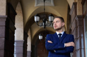 przystojny młody mężczyzna na ciemnym tle