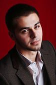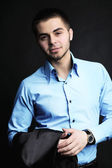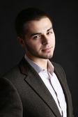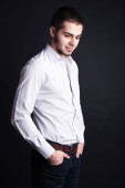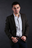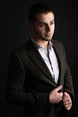 przystojny młody mężczyzna na ciemnym tle