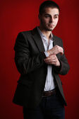 Zdjęcie "przystojny młody siedzi na krześle na czerwonym tle" może być wykorzystywane do celów osobistych i komercyjnych zgodnie z warunkami zakupionej licencji Royalty-free. Obraz jest dostępny do pobrania w jakości wysokiej rozdzielczości do 5760x3840.