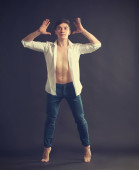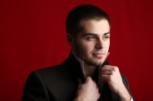 przystojny młody mężczyzna na ciemnym tle