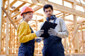 Zdjęcie "dwóch inżynierów opracowuje projekt mieszkania" może być wykorzystywane do celów osobistych i komercyjnych zgodnie z warunkami zakupionej licencji Royalty-free. Obraz jest dostępny do pobrania w jakości wysokiej rozdzielczości do 5760x3840.