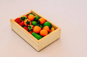 Świeże ogórki i pomidory w drewnianej misce na białym drewnianym stole żywności witaminy czerwony zielony